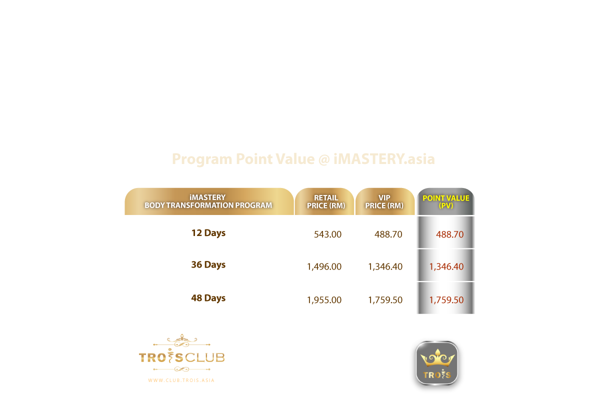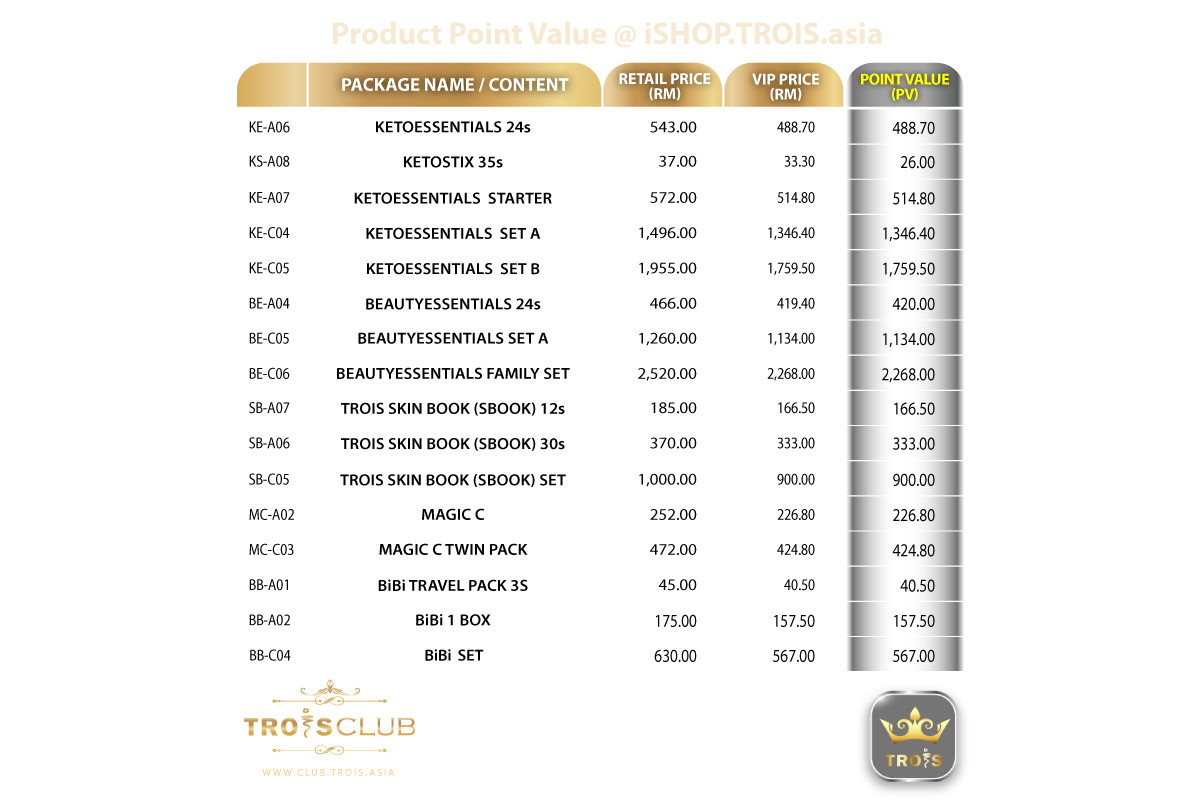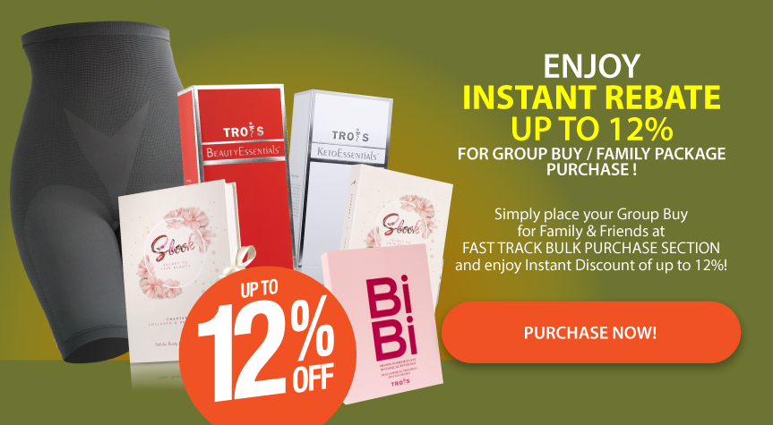 Register and shop on TROIS official platforms as a TROIS VIP. Every product you purchase at TROIS official online shops will earn you PV.